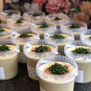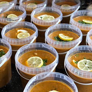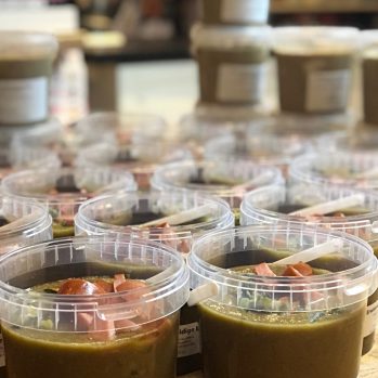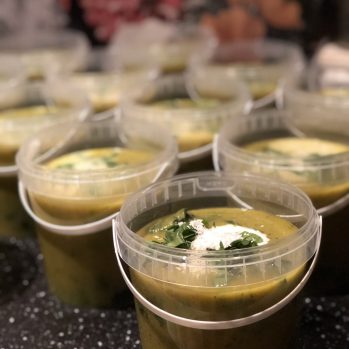 Ook kook ik verse soepen, rijkelijk gevuld met groenten, per liter bevroren verkrijgbaar.