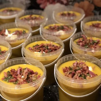 Tijdens de lunch van 12.00 tot 14.00 uur is er een warm kopje soep en een kleintje quiche beschikbaar.