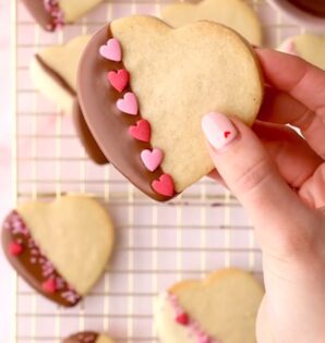 Met deze shortbread koekjes met een randje chocolade en lieve sprinkles verleid jij jouw Valentijn!